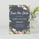 Pink Floral Boho Dark Blue Save the Date