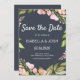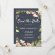 Boho pink floral Save the Date cards with white handwritten script, modern typography and a stylish watercolor painted pink floral border with lush green leaves on a dark blue background. Excusively designed for you by Happy Dolphin Studio. If you need any help or matching products, please contact us at happydolphinstudio@outlook.com. We're happy to help you make your wedding the most beautiful day.