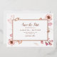 Modern watercolor floral botanical save the date announcement card you can easily customise with your details when you click the "Personalise" button. Featuring modern pink foliage, script, and gold foil