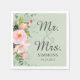 Pink Floral Bouquet Sage Green Mr. & Mrs. Wedding Napkin