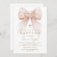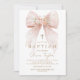 Pink Floral Bow Girl Baptism Invitation