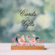 Cards and Gifts clear acrylic tabletop sign features pink wildflowers, roses and daisies, perfect for your bridal shower. CHANGE THE SIZE to fit your event and order with or without a wood stand. MATCHING items in our collection.