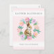 Pink Floral Bunny Easter Blessings Holiday Postcard