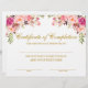 Professional, Customisable, Certificate of Completion. Great for classes, training courses, schools, business courses and more. Personalise with your custom text. Elegant Watercolor Pink Blush Floral and botanical greenery. Gold Script.