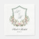 These beautiful watercolor luncheon napkins featuring a crest with multi-hued pink and white flowers and wispy natural greenery, the bride and groom's initials and their wedding date would be perfect for your wedding reception. They're traditional and classic while being fresh, modern and contemporary. They'll be gorgeous on the tables.