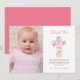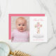 Pink Floral Cross Baptism Photo Thank You Card