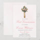Pink Floral first communion invite in Spanish. Invitación de primera comunión para niña