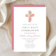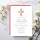 Pink Floral Cross Religious Girl First Communion Invitation