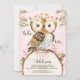 Sweet girl's owl themed second birthday invitation featuring a cute watercolor owl wearing a pink floral crown, some woodland foliage and flowers. This invitation is great for a little girl's second birthday party. All text is editable.