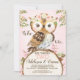 Pink Floral Crown Owl Twins Joint Birthday Invitation