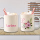 Pink Floral Custom Name and Monogram Two-Tone Coffee Mug