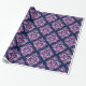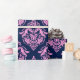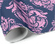 Pink Floral Damasks & Midnight Blue Background Wrapping Paper