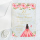 Pink Floral Dark Skin Princess Birthday Party Acrylic Invitations