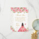 This elegant and glamourous sweet sixteen thank you card features a beautiful princess with dark hair and dark skin in a pink ball gown. The text combines handwritten script and modern sans serif fonts for a classy and sophisticated look. The floral arrangements, butterflies and gold confetti create the perfect blend of rustic and chic.