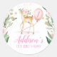 Pink Floral Deer Birthday Favour Sticker