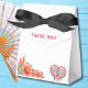 Celebrate love with this vibrant, personalised Mexican bridal shower favour box, perfect for your fiesta bridal shower! This festive design features colourful pink and orange flowers, lively bunting, and floral-patterned maracas, all beautifully set against a crisp white background. A black ribbon bow adds a sophisticated finishing touch. Whether you're hosting a Spanish-inspired celebration or simply love bold and joyful decor, these favour boxes are a charming way to say thank you to your guests in true fiesta style.