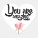 Brighten someone's day with a flower and a happy love greeting. This fun floral sticker features a hand drawn pink flower with a green stem highlighting "You are amazing" printed in a bold black script font with a crisp white background