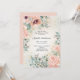 Pink Floral Foliage Gold Glitter 50th Birthday Invitation