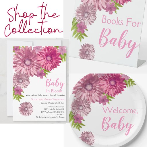 This design coordinates with the other pink Baby In Bloom baby shower designs in my shop.