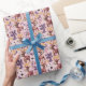 Pink Floral Gingerbread Reindeer and Candy Cane wrapping paper