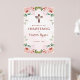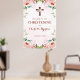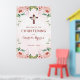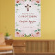 Pink Floral Girl Christening Welcome Poster. Watercolor roses girl Christening poster.