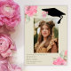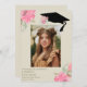 Pink floral girl's photo graduation announcement cards are the perfect addition to any high school or college graduation. These cards feature a pink and muted floral design that can be personalised with any photo and will go perfectly with your other floral, boho, or pink graduation party decorations.