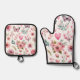 Pink Floral Girly Oven Mitt & Pot Holder Set