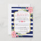 Pink Floral Gold Glitter Navy Blue Striped RSVP Card