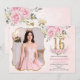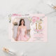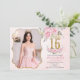 Pink Floral Gold Sweet Sixteen 16th Birthday Photo Invitation