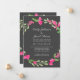 Pink Floral Greenery Dark Grey Elegant Wedding Announcement