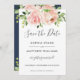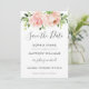 This chic wedding save the date card features a beautiful watercolor blush floral arrangement. Designed to match our Bloomsbury wedding collection. Personalize it with your details easily and quickly, simply press the customise it button to further re-arrange and format the style and placement of the text. (c) The Happy Cat Studio