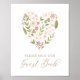 Invite baby shower guests to sign your guest book with this elegant sign, featuring a beautiful pink floral heart and gold typography.