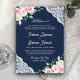 Pink Floral Lace Navy Blue QR Code Muslim Wedding Invitation