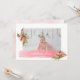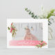 Lovely pink floral with hot pink brush stroke that holds elegant script "celebrate love" and your family name in serif font with the photo of your choice in the middle
