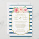 Pink Floral Navy Stripes Gold Wedding Invitations