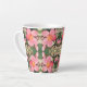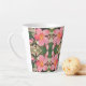 The pink floral pattern on this Latte Mug was created from an original photograph by ZoeSPEAK of pink jatropha flowers and buds blooming in the garden. The closeup photo shows the yellow centre of the flower amid the pink petals. The green leaves of the flower on a beige background finish the pattern.