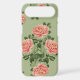 A soft and elegant pink floral seamless pattern designed over a calming green background.