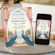 Amaze your guests with this elegant all in one Indian wedding invite featuring beautiful peacocks with pink flowers and vintage Indian arches with modern typography. Simply add your event details on this easy-to-use template to make it a one-of-a-kind invitation.