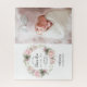 A unique keepsake birth announcement on a jigsaw puzzle. Just add your favorite baby photo and add your baby's birth stats. The pink floral design features a blush pink rose and hydrangea wreath that frames the baby's name, weight and length. Send it to grandparents, aunts, uncles, godparents and best friends. There are also coordinating paper birth announcements and stickers. Let me know if you need help finding anything.