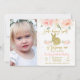 Pink floral photo bunny 1st Birthday Invitation