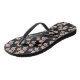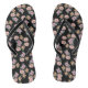 Pink floral print pattern on black thongs