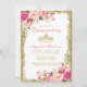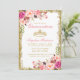 Pink Floral Quinceanera Gold Glitter Crown Invitation