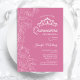 Pink White Floral Quinceanera Birthday Party Invitation. Minimalist modern design featuring botanical outline drawings accents and typography script font. Simple trendy invite card perfect for a stylish female 15th bday celebration. Can be customised to any age. Printed Zazzle invitations or instant download digital printable template.