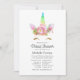 Cute floral Unicorn with rainbow virtual online long distance baby shower invitation with elegant handwriting typography.