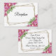 Reception Cards. Featured with beautiful pink flowers on a white background ready for you to personalise. A great template design for a wedding, anniversary, birthday or any other event by simply changing the text. Matching products are available. ⭐This Product is 100% Customisable. Graphics and/or text can be added, deleted, moved, resized, changed around, rotated, etc... ✔(just by clicking on the "EDIT DESIGN" area) 📌99% of my designs in my store are done in layers. This makes it easy for you to resize and move the graphics and text around so that it will fit each product perfectly. 📌 (Please be sure to resize or move graphics if needed before ordering) You can also "TRANSFER DESIGN" on other Zazzle products and adjust the design to fit most of Zazzle items. (button is down on the right side of the page) This design is made with high resolution vector and/or digital graphics for a professional print. 📌NOTE: (THIS IS A PRINT. All Zazzle product designs are "prints" unless otherwise stated under "About This Product" on the left side of this page) The design will be printed "EXACTLY" like you see it on the screen and on the product...so please make sure when you do your changes on the resizing of any of the graphics or text that it fits in the areas correctly and that your spelling and wording is how you like it to be in size, colour and font. If you have any questions about the "DESIGN ONLY" or need help please contact me at ✉ siggyscott@comcast.net or visit my store link: https://www.zazzle.com/store/magical_weddings (Copy and Paste) I'll be happy to help. 📌 ALL OTHER QUESTIONS (shipping, refund, the printing, the product, etc...) please contact Zazzle or the Maker ⭐DIRECTLY⭐. Thank you for the support and stopping by my store - Magical_Weddings. © Donna Siegrist⭐⭐⭐ ZAZZLE promises 100% satisfaction. If you don't absolutely love it, Zazzle will take it back! ⭐⭐⭐ 1-888-8ZAZZLE (1-888-892-9953) Phone hours: Mon - Fri: 9AM - 5PM PT (12PM - 8PM ET