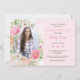 A pink photo invitation bursting with flowers. Perfect as a birthday invitation, sweet sixteen and religious sacraments. The card is easy to customise with your wording, font and font colour. Not exactly what you're looking for? All our products can be custom designed to meet your needs at no extra charge. Simply contact us at askpixieprints@aol.com. Coordinating products available: Just ask us!