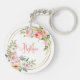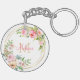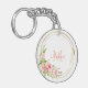Lovely floral keychain features arrangements of pink and white roses and greenery on a gold foil frame. You personalise it in the centre with your name and initial. The reverse side has a similar design and is also monogrammed.