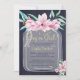 Rustic country style gender reveal baby shower elegant invitation template with a beautiful blush pink and mint magnolias bouquet, three golden hearts, gold typography script and a big white transparent mason jar on a dark midnight navy blue chalkboard background. +++++++++++ Easy to personalise with your details! ++++++++++++ You can choose to customise it further changing fonts and colours of lettering. +++++++++++++ The invitation is suitable for rustic country / farm ranch / garden backyard spring or summer night baby shower party or bbq.