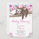 Pink Floral Sleepy Sloth and Baby Shower Invitation