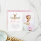 Pink Floral Some Bunny Girl 1st Birthday Photo Thank You Card